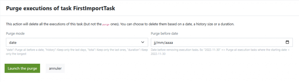- Click Purge the executions of the task.