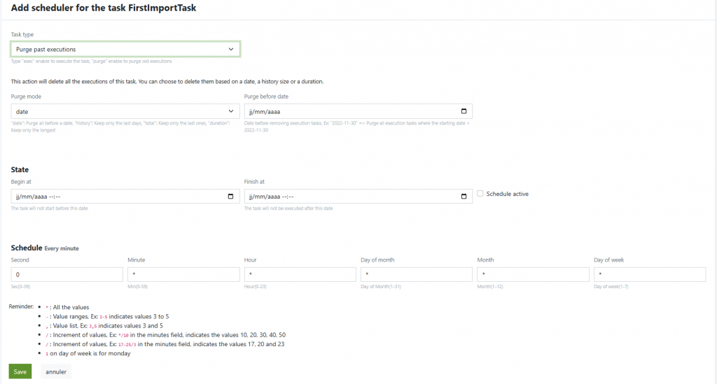 - Open Tasks → {Your task} → Cron planification.
